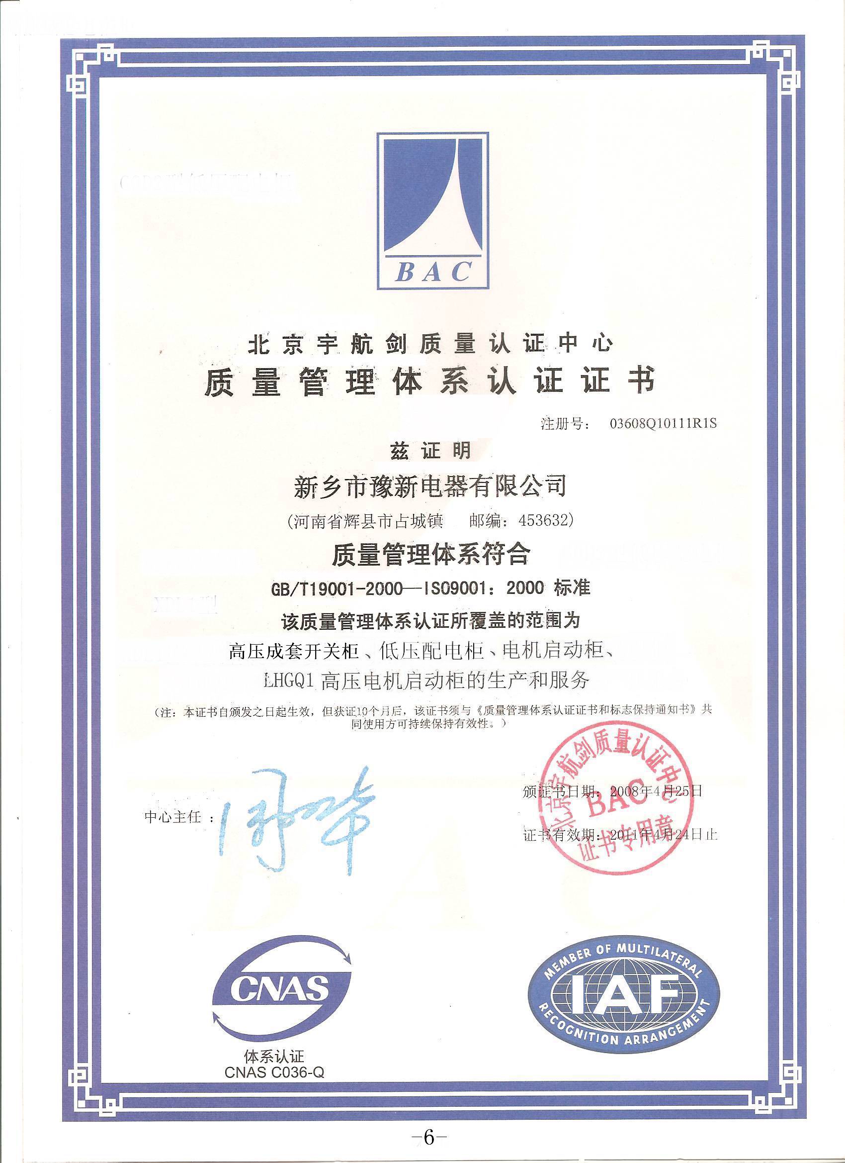 ISO9000質(zhì)量管理體系證書
